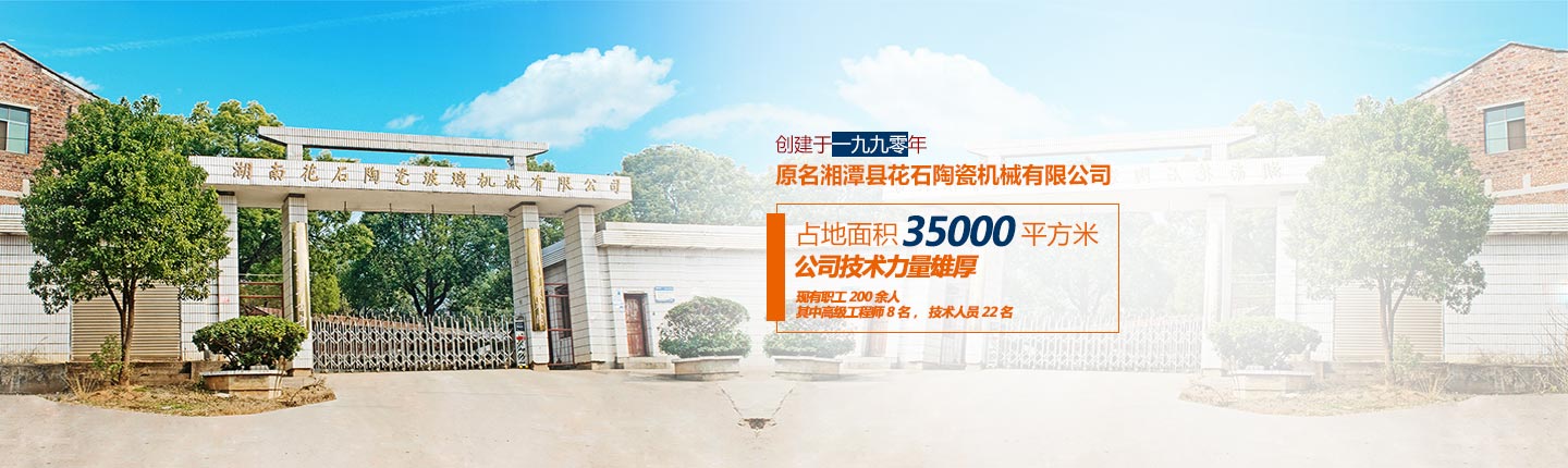 湖南花石陶瓷玻璃機械有限公司,創(chuàng)建于一九九零年,原名湘潭縣花石陶瓷機械有限公司,占地面積35000平方米,公司技術(shù)力量雄厚,現(xiàn)有職工200余人,其中高級工程師8名,技術(shù)人員22名,擁有各類先進加工及檢測設(shè)備,具有豐富的生產(chǎn)管理經(jīng)驗,是陶瓷機械及玻璃深加工機械的專業(yè)制造商。